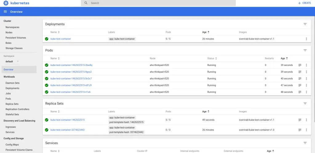 This will start five Pods of kube-test-container, but also other resources like Deployment, ReplicaSet, and Service.